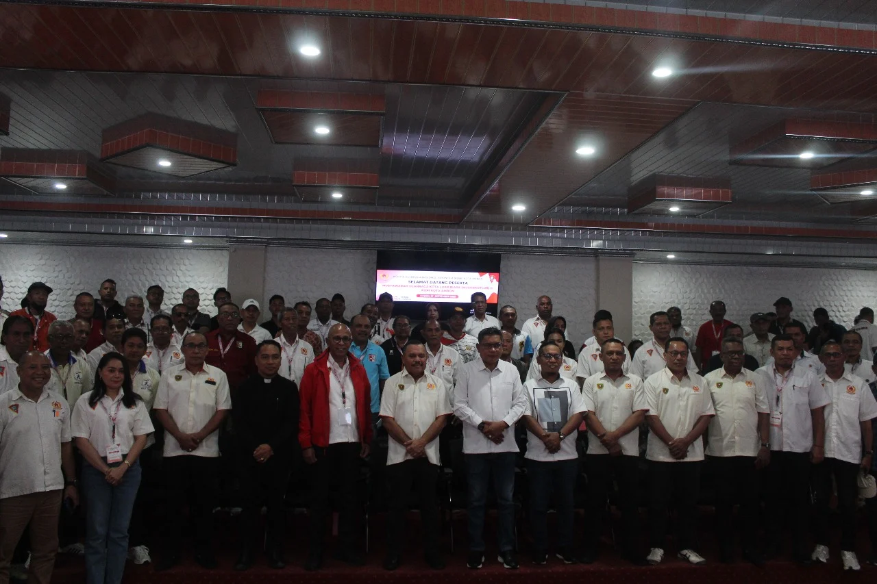 SUARATAHURI.COM – Ambon,Bodewin Wattimena, resmi terpilih secara aklamasi sebagai Ketua Umum Komite Olahraga Nasional Indonesia (KONI) Kota Ambon periode 2025–2029. Penetapan ini berlangsung dalam Musyawarah Olahraga Kota Luar Biasa (Musorkotlub) II di ruang Vilsingen Balai Kota Ambon, Sabtu (27/09/2025).