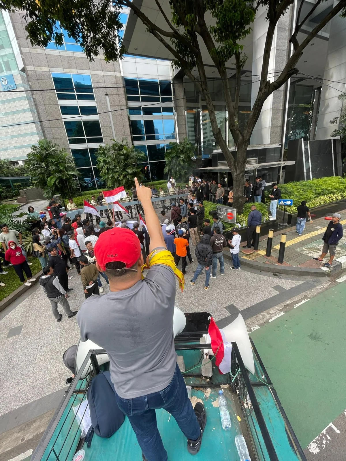 Dari atas mobil komando, pokok-pokok seruan perlawanan diserukan oleh Aliansi Perjuangan Keadilan Rakyat Tanimbar.