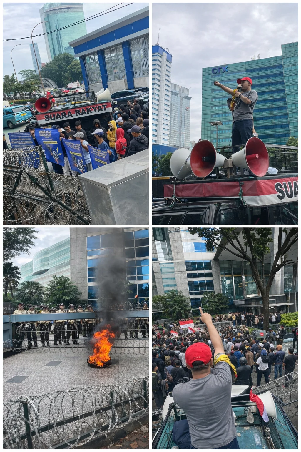 SUARATAHURI.COM  –  Jakarta,Asap hitam dari ban bekas yang terbakar, membumbung tinggi di depan Gedung SKK Migas, Jakarta, Selasa (24/02/2026.