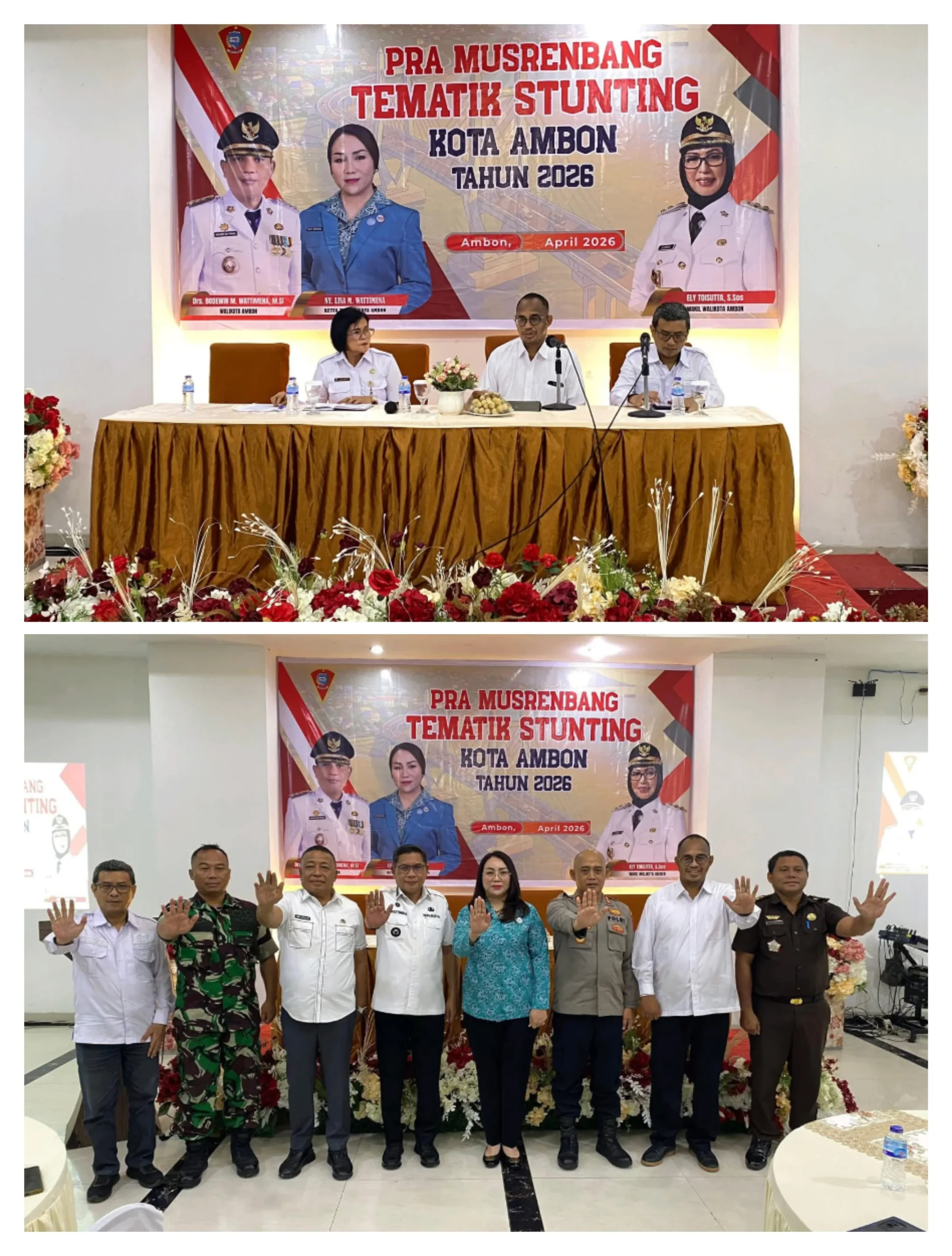Ambon.Suaratahuri.Com. – Pemerintah Kota Ambon terus memperkuat upaya percepatan penurunan stunting melalui Pra Musrenbang Tematik Stunting Tahun 2026 yang digelar di Marina Hotel Ambon, Rabu (08/04/2026).