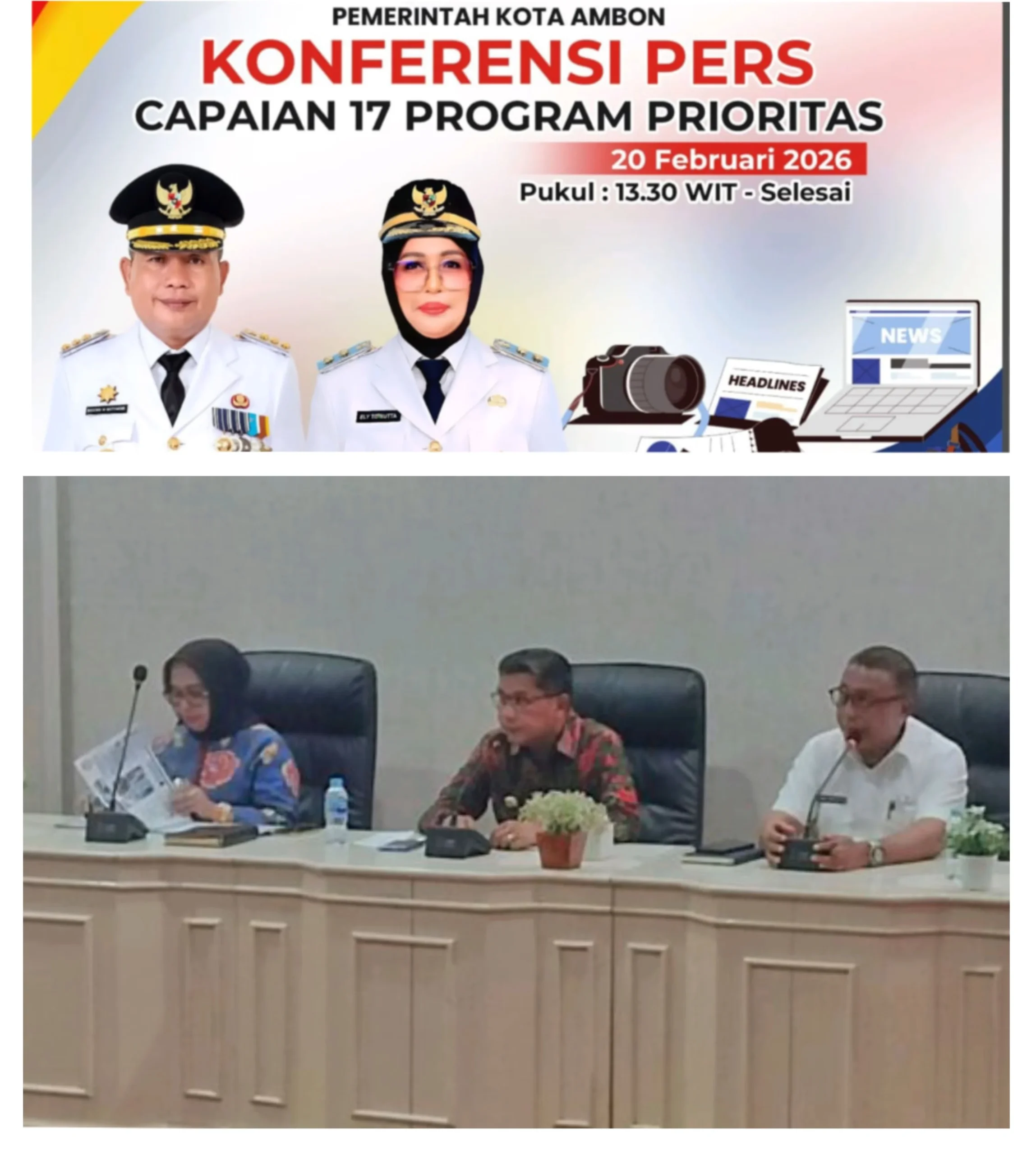 SUARATAHURI.COM — Ambon,Pemerintah Kota Ambon memaparkan capaian satu tahun pelaksanaan 17 Program Prioritas dalam konferensi pers di Ruang Vlisingen, Balai Kota Ambon, Jumat (20/02/2026).