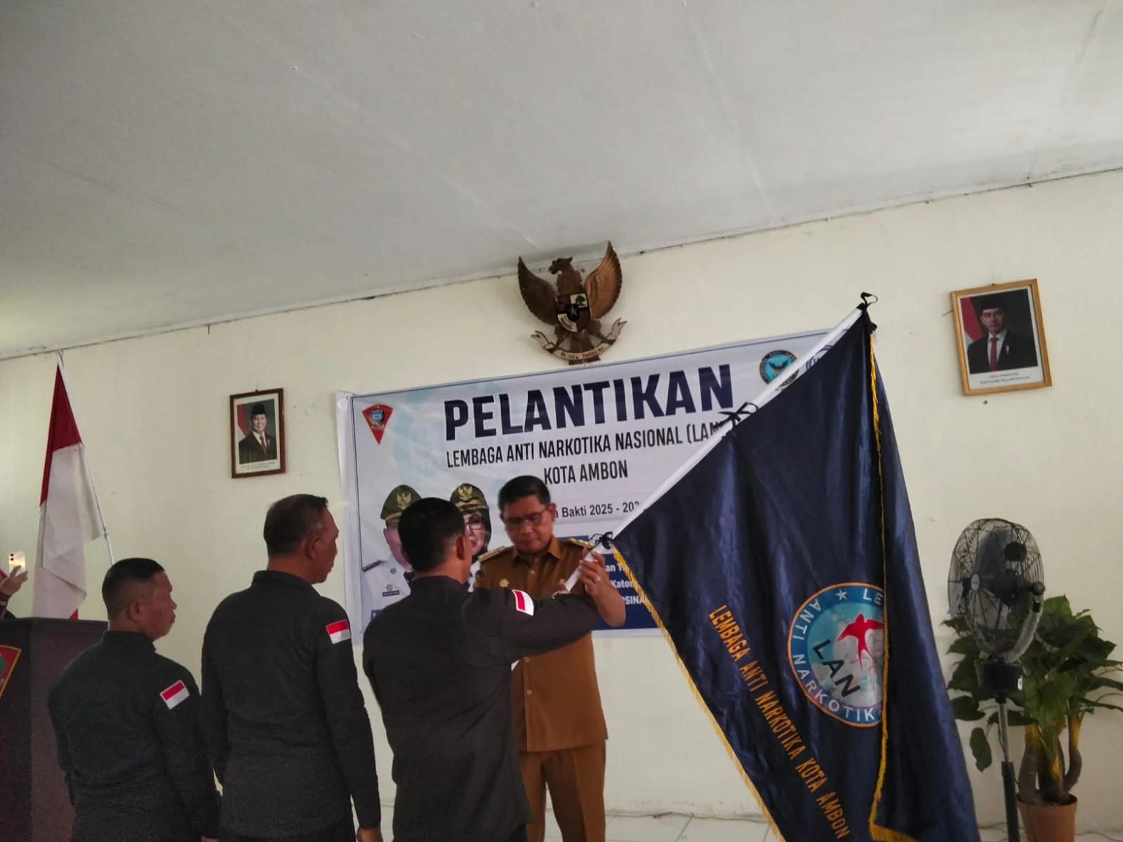 SUARATAHURI.COM – Ambon,Pemerintah Kota Ambon menegaskan komitmennya untuk terus memerangi penyalahgunaan dan peredaran narkoba melalui sinergi lintas lembaga serta keterlibatan aktif masyarakat. Penegasan tersebut disampaikan Wali Kota Ambon, Bodewin M. Wattimena, saat membuka dan melantik Pengurus Lembaga Anti Narkotika (LAN) Kota Ambon Masa Bakti 2025–2030, yang berlangsung di Aula Kantor Camat Sirimau, kawasan Karpan, Senin (8/12/2025).